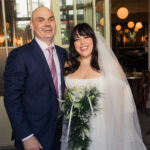 O rabino Sharon Brous, de Ikar, se casou com eles em Valentine, um espaço de eventos no centro da cidade, em 16 de fevereiro – o nono aniversário de seu primeiro encontro – em frente a 177 convidados. O local lhes deu um profundo desconto depois que o prédio Memorial William D. Davies, em Charles S. Farnsworth Park, de Altadena, seu local original, queimado.
